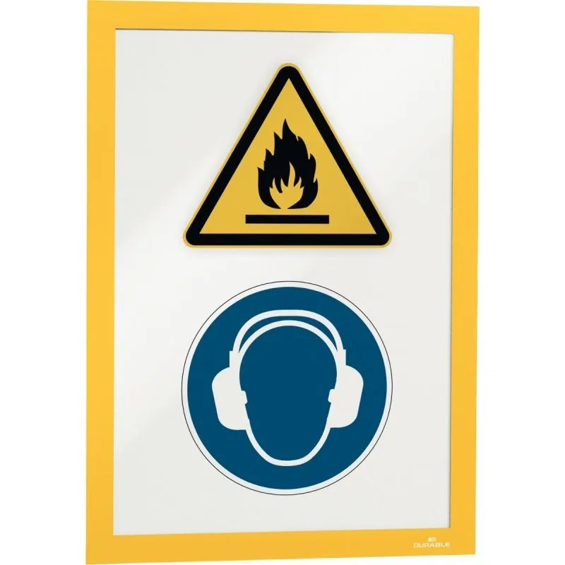 Sachet de 2 cadres d’affichage A4 adhésif repositionnable avec contour magnétique jaune